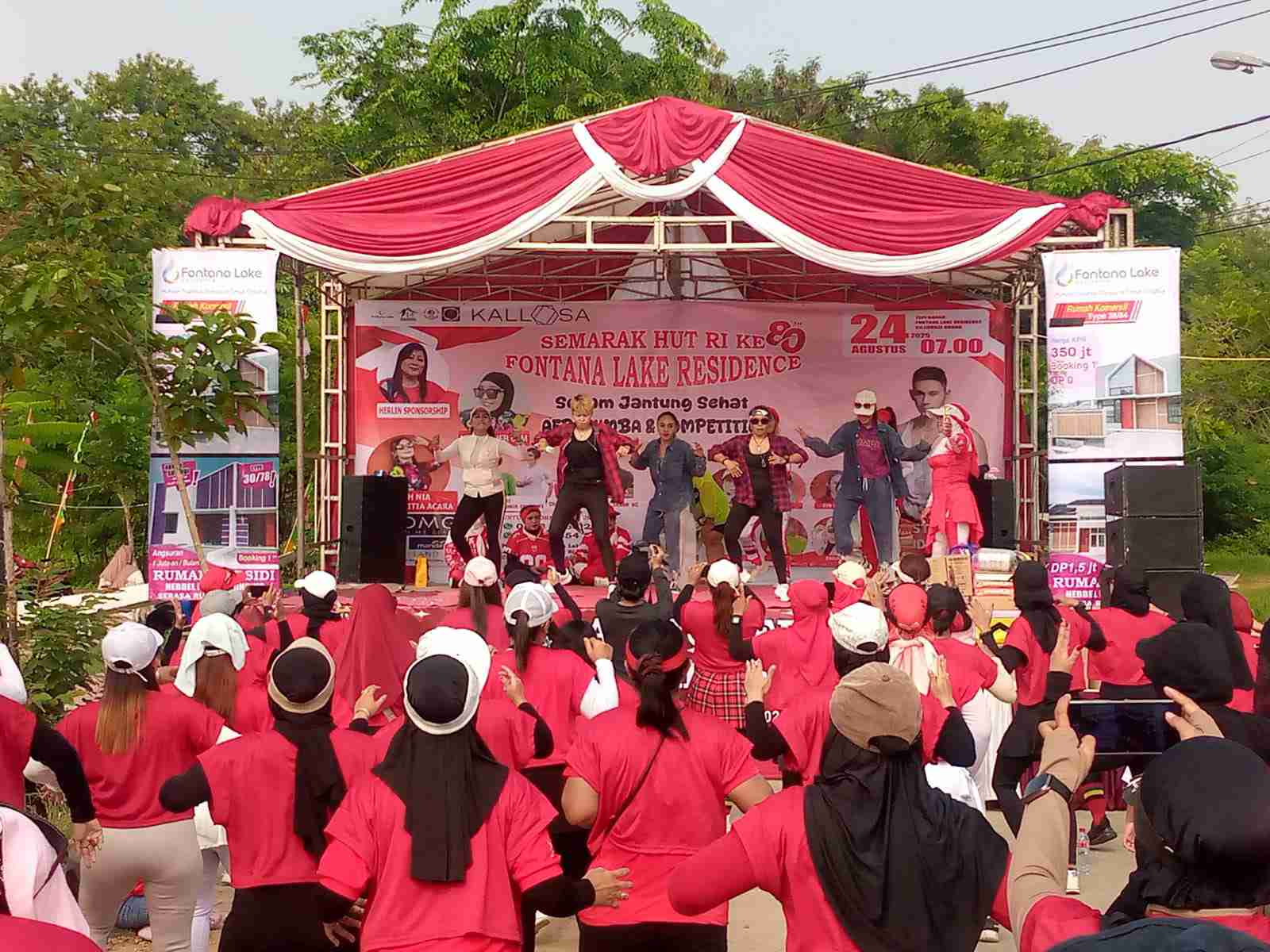 CILEUNGSI – BOGOR, MB1 II‎ Bogor dalam rangka memperingati Hari Ulang Tahun Republik Indonesia (HUT RI) ke-80, Fontana Lake Residence bekerja sama dengan Mitra Property dan Kallosa menggelar acara Gebyar Fun Aerozumba and Competition. Kegiatan ini berlangsung bertempat di Tepi Danau, Fontana Lake Residence, Jl. Raya Ciuncal, Desa Situsari, Kecamatan Cileungsi, Kabupaten Bogor.Minggu (24/08/2025).