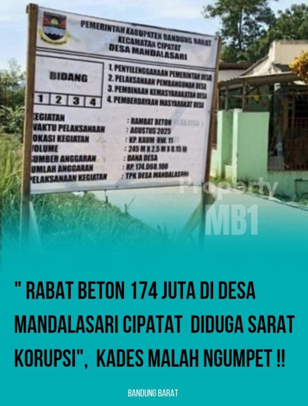 KABUPATEN BANDUNG BARAT, MB1 II Proyek rabat beton di Kp, Kaum RW 11 Desa Mandalasari, Kecamatan Cipatat, Kabupaten Bandung barat, menuai sorotan tajam ditengah masyarakat.