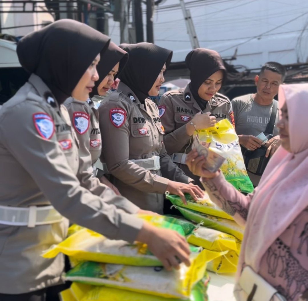 Kapolresta Jambi Kombes Pol Boy Sutan Binanga Siregar SIK MH Melalui Kasat Lantas AKP Hadi Siswanto SIK MH menyampaikan ” guna mendukung ketahanan pangan maka pada hari ini Rabu 27 Agustus 2025 Personel Polwan Polresta Jambi, Berjibaku melaksanakan giat penjualan beras SPHP (Stabilitas Pasokan dan Harga Pangan) dalam rangka Gerakan Pangan murah bertempat di Kantor Unit Laka Lantas Polresta Jambi.