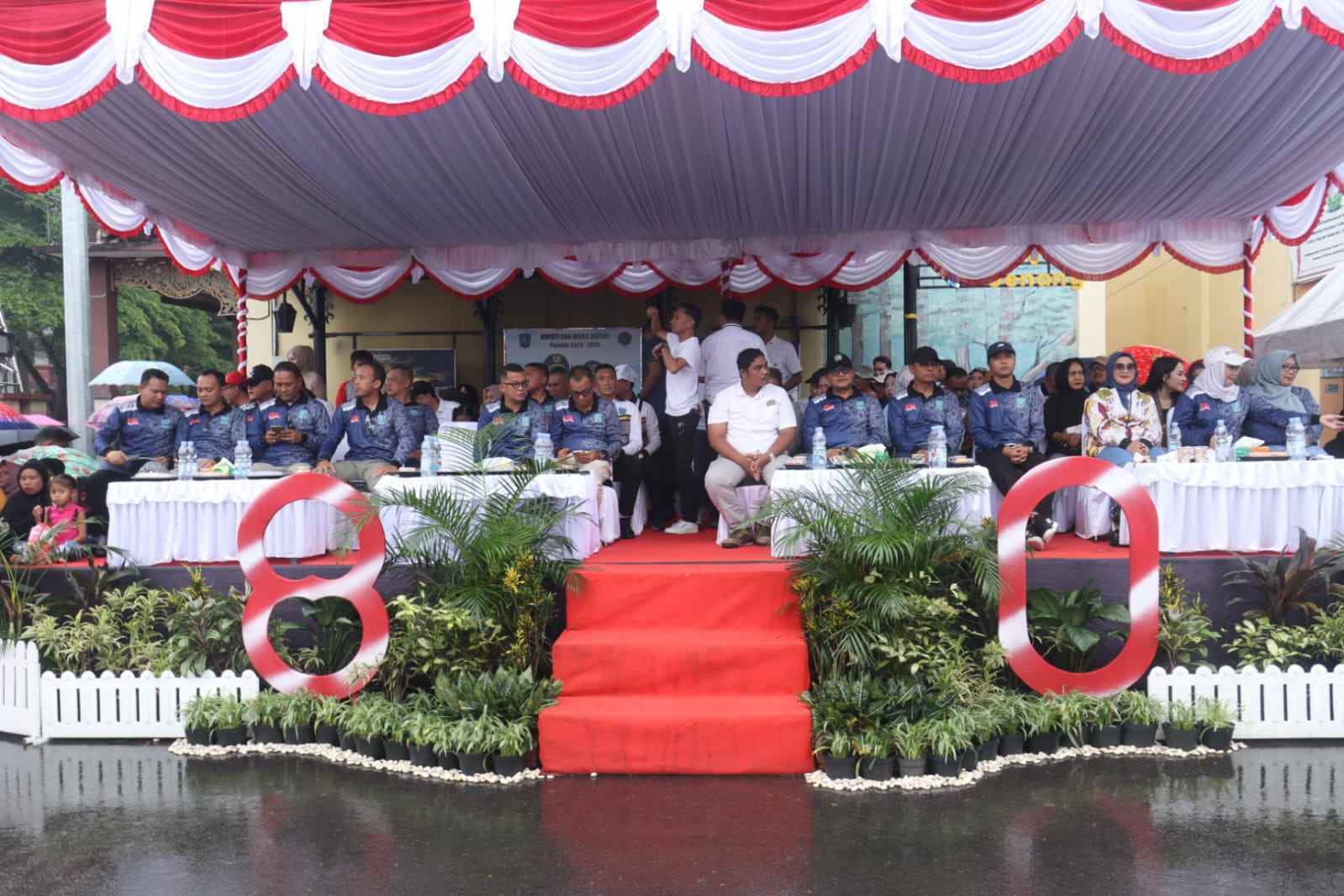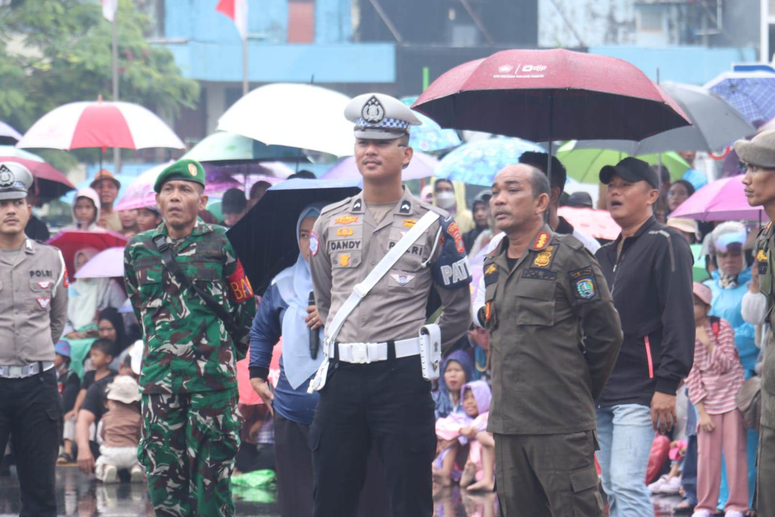 BELITUNG, MB1 II Sejumlah personel Polres Belitung ditempatkan di beberapa titik yang menjadi tempat melintasnya rombongan Pawai. Walaupun cuaca hujan personel Polres Belitung tetap melaksanakan pengamanan Pawai Pembangunan dalam rangka hari kemerdekaan Republik Indonesia ke-80, Sabtu (06/09/2025).