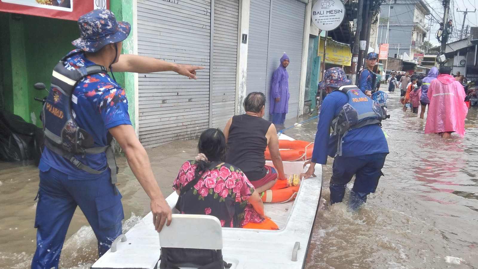 Ditpolairud Polda Bali langsung menerjunkan tim SAR perairan lengkap dengan rubber boat, dipimpin langsung oleh Dirpolairud Polda Bali. Dengan sigap, personel membantu warga yang terisolasi untuk dievakuasi ke tempat yang lebih aman.