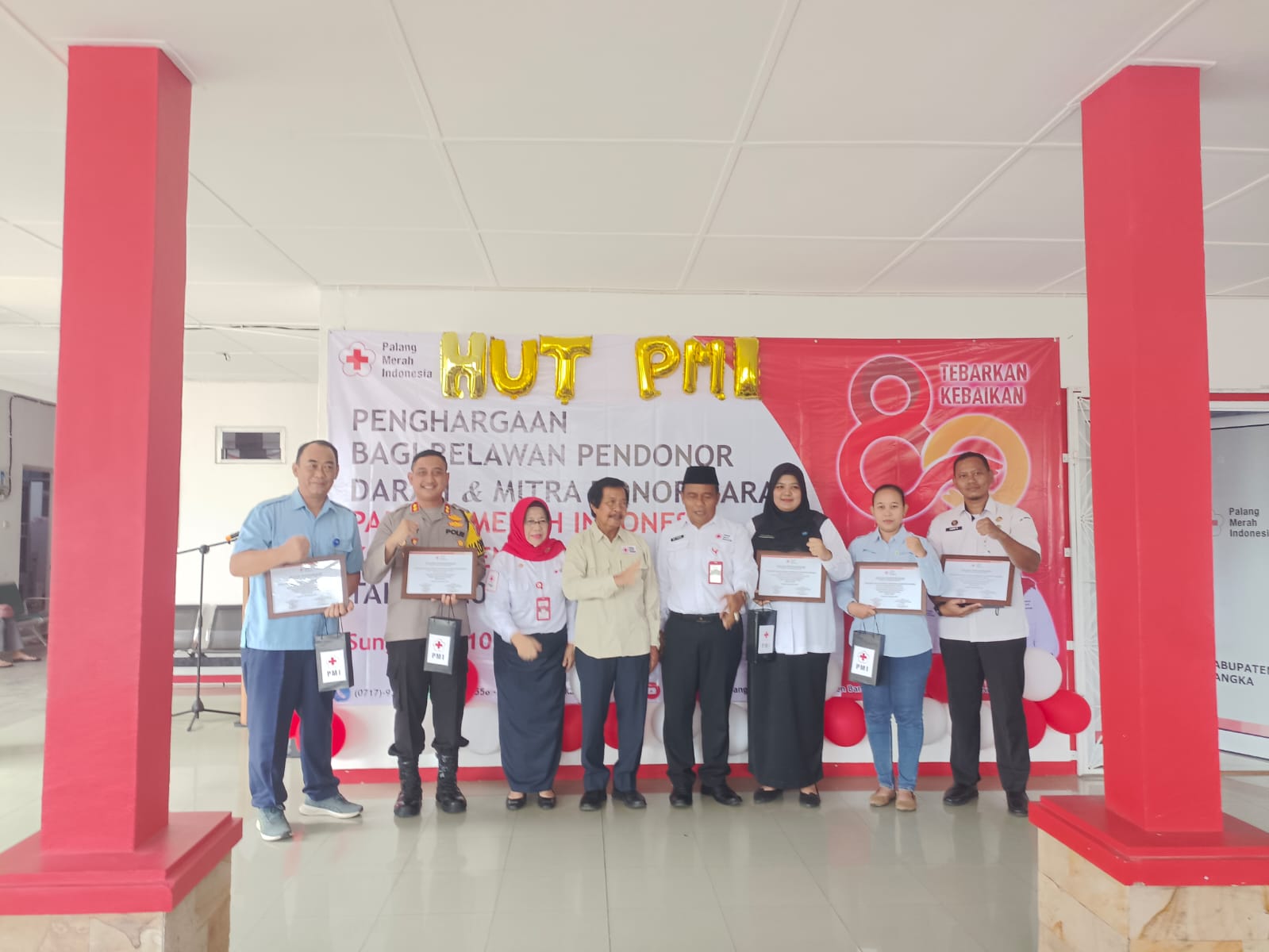 Selain itu juga ada 50 orang pendonor darah yang menerima langsung penghargaan dari PMI Kabupaten Bangka.