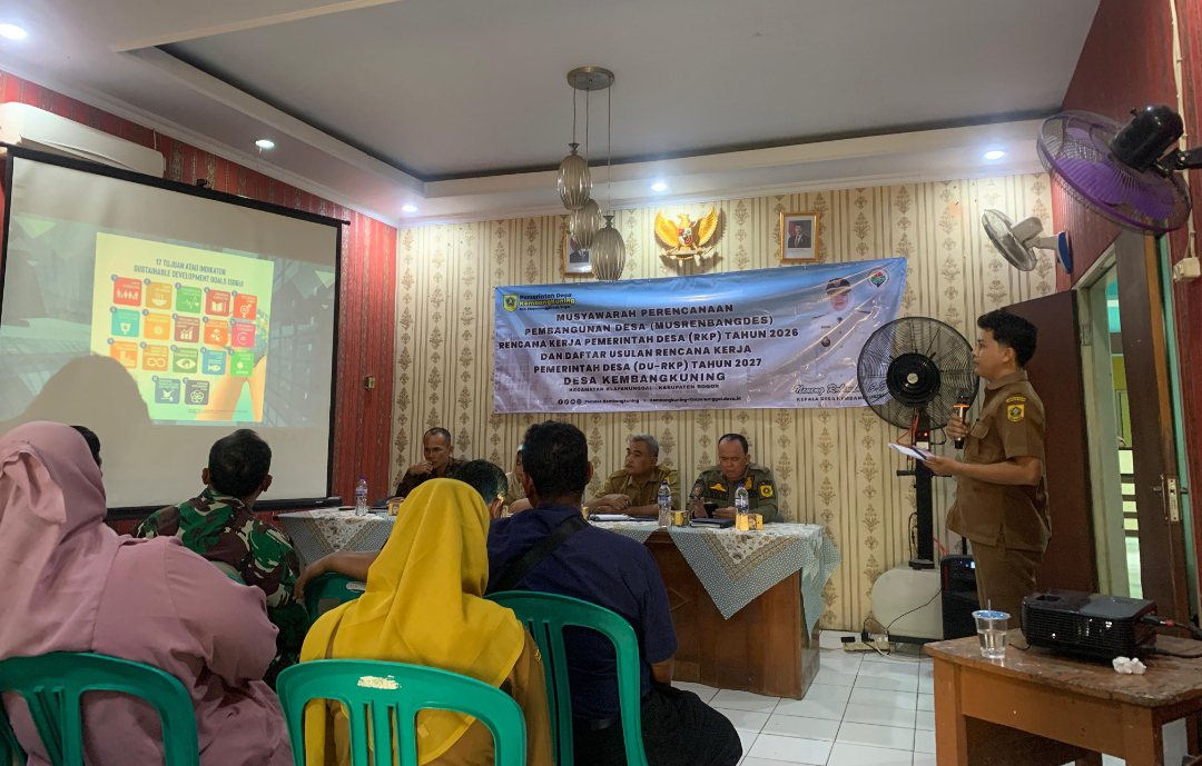 KLAPANUNGGAL – BOGOR, MB1 II Pemerintah Desa Kembang Kuning, Kecamatan Klapanunggal, Kabupaten Bogor, menyelenggarakan Musyawarah Perencanaan Pembangunan Desa (Musrenbangdes) dalam rangka penetapan Rencana Kerja Pemerintah Desa (RKPDES) Tahun Anggaran 2026 serta perubahan Anggaran Pendapatan dan Belanja Desa (APBDES) Tahun 2025, Pada Senin (29/09/2025).