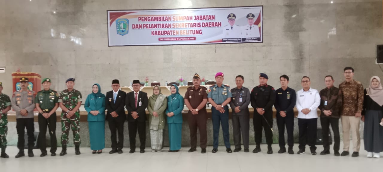 BELITUNG, MB1 II Bupati Belitung, H. Djoni Alamsyah Hidayat, S.Sos., resmi melantik Marzuki, S.IP., sebagai Sekretaris Daerah (Sekda) Kabupaten Belitung di Gedung Serbaguna Ishak Zainuddin, Kantor Bup...