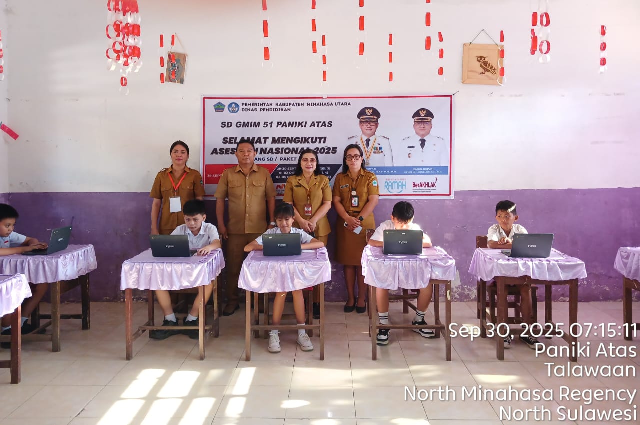Terkait dengan pelaksanaan Asesmen Nasional berbasis komputer (ANBK) tahun 2025 jenjang sekolah dasar di SD GMIM 51 Paniki Atas, Awak media Bhayangkara Satu melakukan konfirmasi kepada kepala SD GMIM 51 Paniki Atas Noferson Badar SPd bertempat di ruang kerjanya. Kepsek memaparkan sebelum pelaksanaan ANBK, pihak sekolah telah melakukan berbagai persiapan termasuk pelatihan bagi guru dan siswa mencakup pengenalan terhadap sistem format sehingga para siswa telah siap dan percaya diri saat mengikuti ANBK,” Ungkap Kepsek.