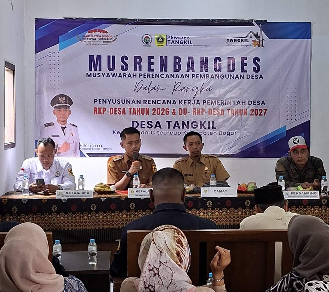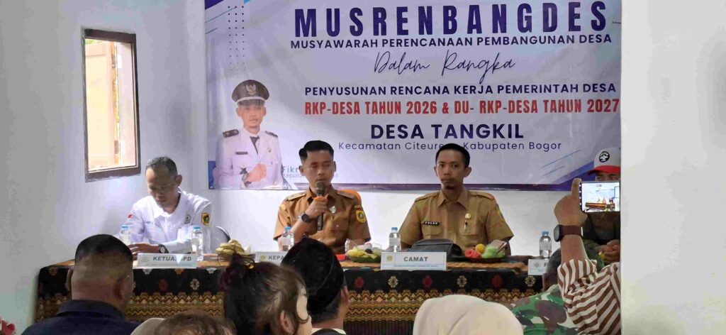 CITEUREUP – BOGOR, MB1 II Pemerintah Desa Tangkil menggelar kegiatan Musyawarah Perencanaan Pembangunan Desa (Musrenbangdes) dalam rangka penyusunan Rencana Kerja Pemerintah Desa (RKPDes) Tahun 2026 dan DU-RKPDes Tahun 2027, bertempat di Aula Kantor Desa Tangkil, Kecamatan Citeureup, Kabupaten Bogor, Pada Senin (06/10/2025).
