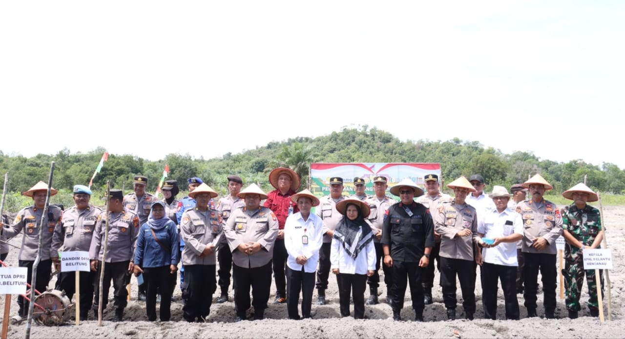 Kegiatan tersebut dipimpin langsung oleh Kapolres Belitung AKBP Sarwo Edi Wibowo, S.I.K., dan dihadiri Wakapolres, Para PJU, unsur Forkopimda Kabupaten Belitung, Kadin Ketahanan Pangan, Kadin Kehutanan Kabupaten Belitung, Kepala Perum Bulog KCP Kab. Belitung, Kepala KPHL Belantu Mendanau, Danyon Den B Brimob, serta perangkat desa dan masyarakat setempat.