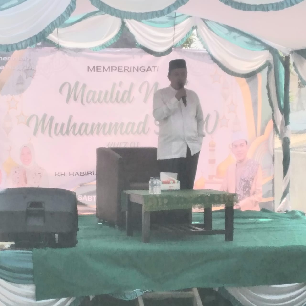 Penceramah dalam acara tersebut adalah KH. Habibi, Lc (Ki Jangkrik – Cilegon), yang memberikan tausiyah bertema “Meneladani Akhlak Rasulullah SAW dalam Kehidupan Sehari-hari”. Dalam ceramahnya, beliau mengingatkan pentingnya meneladani sifat jujur, amanah, dan kasih sayang yang diajarkan Rasulullah SAW.