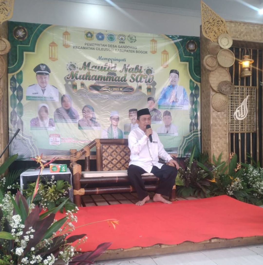 CILEUNGSI – BOGOR, MB1 ll Pemerintah Desa Gandoang, Kecamatan Cileungsi, Kabupaten Bogor, menggelar kegiatan Peringatan Maulid Nabi Muhammad SAW 1447 Hijriah / 2025 Masehi pada Sabtu,(18/10/2025), bertempat di halaman Kantor Desa Gandoang.