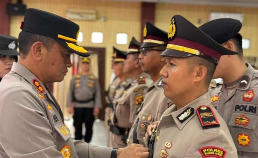 MUARO JAMBI, MB1 II Kapolres Muaro Jambi, AKBP Heri Supriawan, S.I.K., M.H., memimpin langsung upacara penerimaan jabatan Kasat Samapta serta serah terima jabatan (Sertijab) Kasat Intelkam dan Kapolsek Mestong, yang digelar di Aula Wirapratama Polres Muaro Jambi pada Senin (20/10/2025) siang.