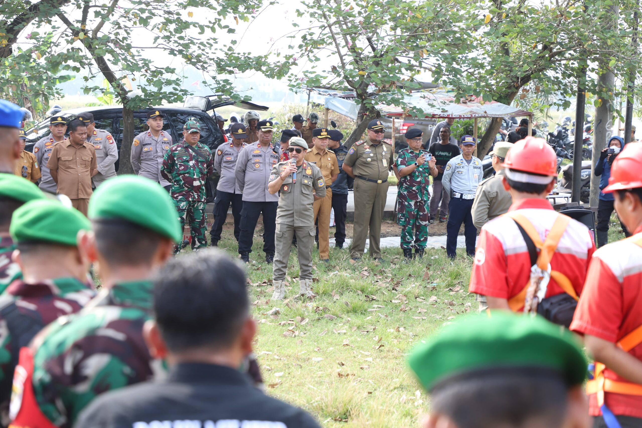 “Baik ya, penertiban pada hari ini, Senin tanggal 20 Oktober 2025 kita laksanakan di Kecamatan Cikarang Utara dengan dukungan semua unsur, mulai dari muspida, muspika, hingga pemerintah desa,” ujar Surya Wijaya.
