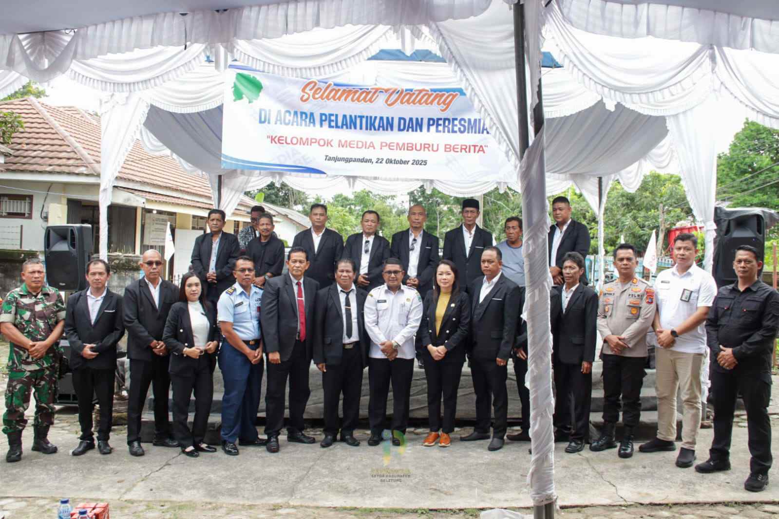 BELITUNG, MB1 II Pelantikan Pokmaruta tersebut ditandai dengan pengukuhan Ketua Kelompok media pemburu berita (POKMARUTA), Juhri beserta pengurus, oleh Bupati Belitung Djoni Alamsyah Hidayat, S.Sos., Yang di wakili Sekda Belitung Marzuki, S.IP., Di halaman kantor Pokmaruta, Rabu (22/10/2025).