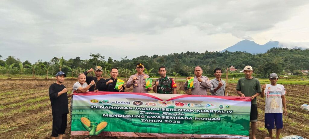 LEUWILIANG – BOGOR, MB1 II Guna mendukung Suwasembada Panganan Tahun 2025. Kapolsek Leuwliang Kompol Maryanto bersama Pemerintah Desa (Pemdes) Puraseda Kecamatan Leuwiliang Kabupaten Bogor melakukan penanaman bibit jagung di kampung tengah RT.01/RW.03. Kamis (30/10/2025).