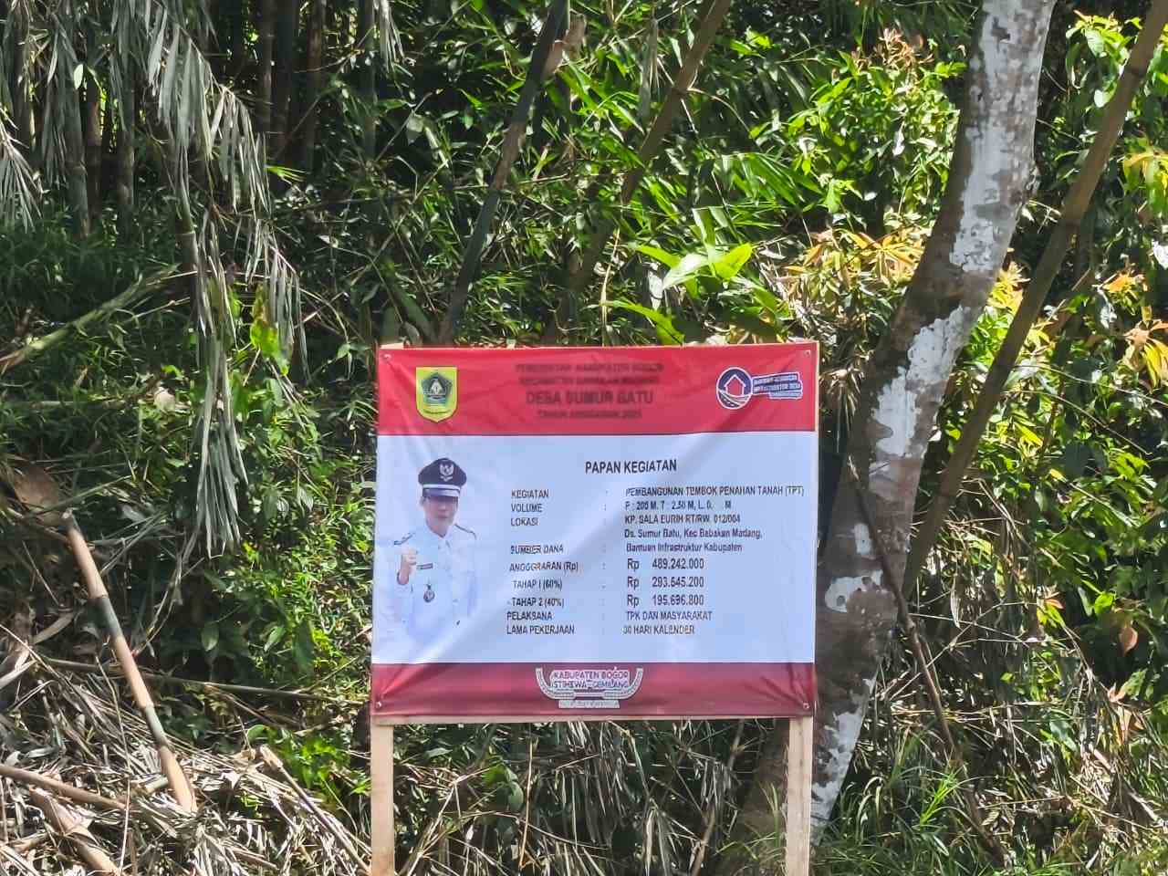 Melalui program Bantuan Keuangan (Bankeu) Infrastruktur Desa Kabupaten Bogor 2025, Pemdes Sumur Batu saat ini tengah melaksanakan pembangunan Tembok Penahan Tanah (TPT) yang berlokasi di Kampung Sala Eurih RT 012/ RW 04. Kegiatan ini memiliki volume pekerjaan P = 205 M, T = 2,50 M, L = 0,8 M dengan total anggaran sebesar Rp 489.242.000,- (Termasuk Pajak), yang dilaksanakan oleh TPK dan masyarakat setempat selama 30 hari kalender.