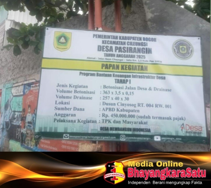CILEUNGSI – BOGOR, MB1 II Pemerintah Desa Pasirangin, Kecamatan Cileungsi, Kabupaten Bogor, di bawah kepemimpinan Kepala Desa Ismail HS, melaksanakan kegiatan Betonisasi Jalan Desa dan Pembangunan Drainase melalui Program Bantuan Keuangan Infrastruktur Desa (Bankeu) Tahap I Tahun Anggaran 2025.