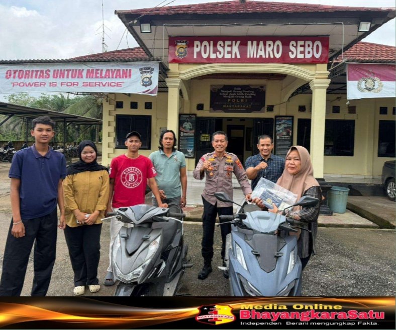 MUARO JAMBI, MB1 II Polsek Maro Sebo Polres Muaro Jambi menyerahkan satu unit kendaraan bermotor yang sebelumnya diamankan sebagai barang bukti hasil tindak pidana pencurian oleh pelaku yang telah diamankan , dan sempat kabur, karena gerak cepat Polsek Maro Sebo kurang dari 24 Jam residivis pelaku RR dan FA berhasil ditangkap kembali.