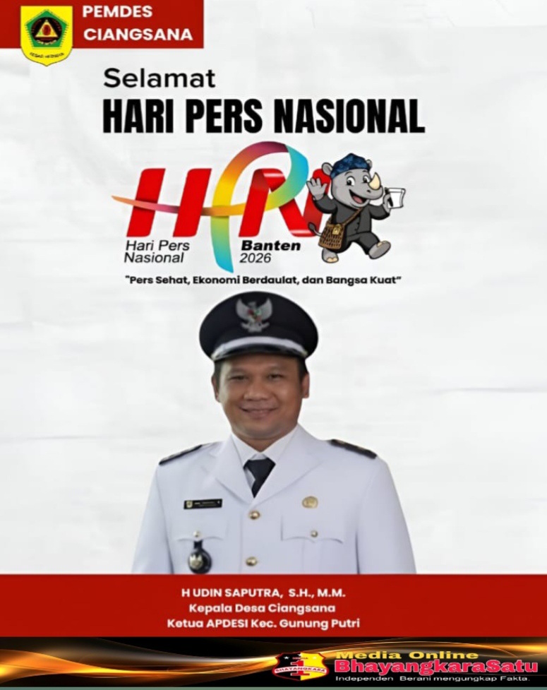GUNUNG PUTRI – BOGOR, MB1 II Pemerintah Desa Ciangsana menyampaikan ucapan Selamat Hari Pers Nasional (HPN) Tahun 2026 yang diperingati secara Nasional.