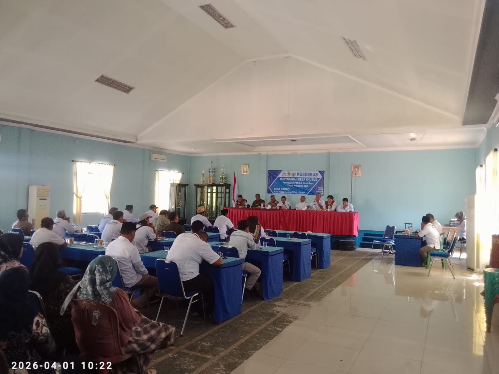 KLAPANUNGGAL – BOGOR, MB1 // Pemerintah Desa Nambo melaksanakan kegiatan Musyawarah Desa Khusus (Musdessus) dalam rangka penetapan Keluarga Penerima Manfaat (KPM) Bantuan Langsung Tunai Dana Desa (BLT-DD) Tahun Anggaran 2026. Kegiatan tersebut berlangsung di Aula Kantor Desa Nambo, pada Rabu (01/04/2026).