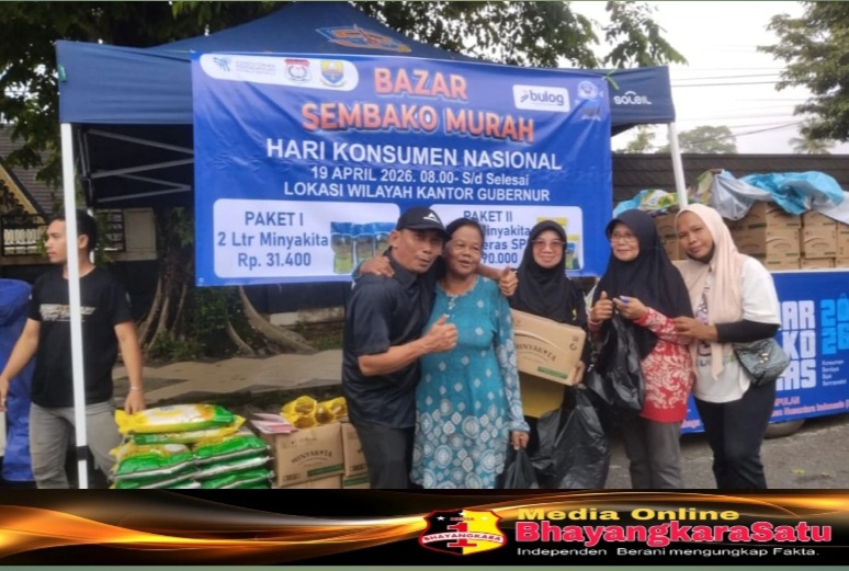 JAMBI, MB1 // Dalam rangka memperingati Hari Konsumen Nasional Pemprov Jambi, Bulog Wilayah Jambi dan Lembaga Perlindungan Konsumen Nusantara Indonesia (LPKNI) mengadakan Bazar Sembako Murah di depan Kantor Gubernur Jambi.