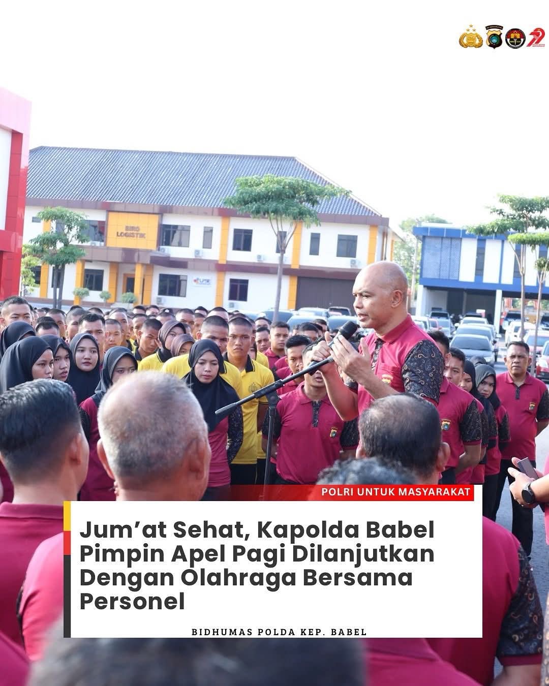 BABEL, MB1 II Jum’at Sehat, Kapolda Kep. Babel Irjen Pol Hendro Pandowo, M.Si memimpin Apel Pagi serta dilanjutkan dengan Olahraga Bersama di Lapangan Apel Belakang Polda Kep. Babel.