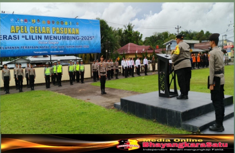 BELITUNG, MB1 II Dalam rangka memastikan kesiapan pengamanan perayaan Natal 2025 dan Tahun Baru 2026, Kapolres Belitung AKBP Sarwo Edi Wibowo, S.I.K., memimpin langsung Apel Gelar Pasukan Operasi Lili...