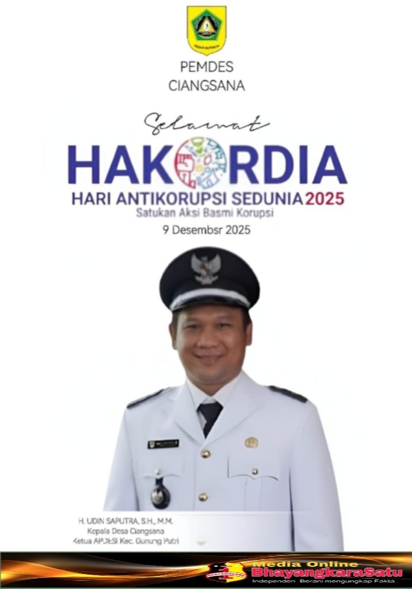 GUNUNG PUTRI – BOGOR, MB1 II Dalam momentum Hari Antikorupsi Sedunia (Hakordia) 9 Desember 2025, Pemerintah Desa Ciangsana, Kecamatan Gunung Putri, Kabupaten Bogor, menyampaikan komitmen penuh d...