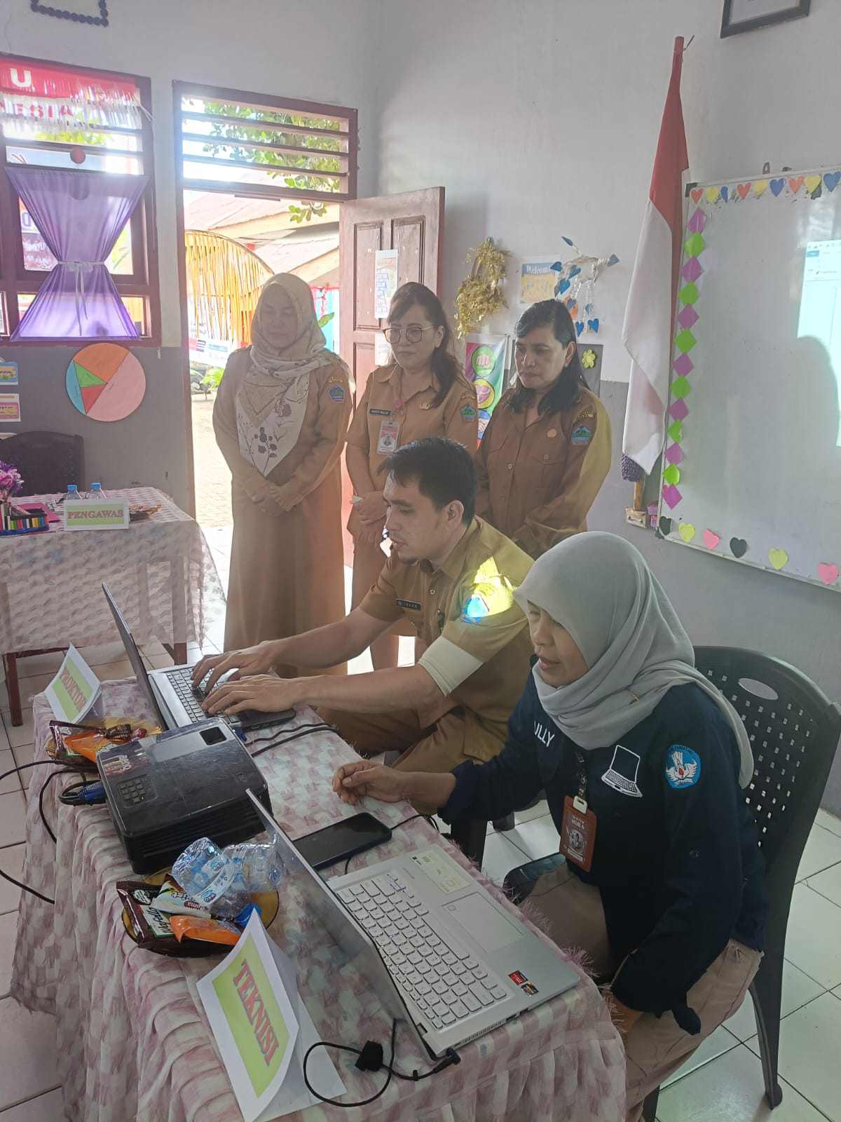 MINAHASA UTARA, MB1 II Kepala Dinas pendidikan Minahasa Utara Drs Aldrin Posumah M,SI didampingi Kasubag perencanaan Dinas pendidikan Minahasa Utara Merly Manewus M.pd pantau pelaksanaan Asesmen Nasio...