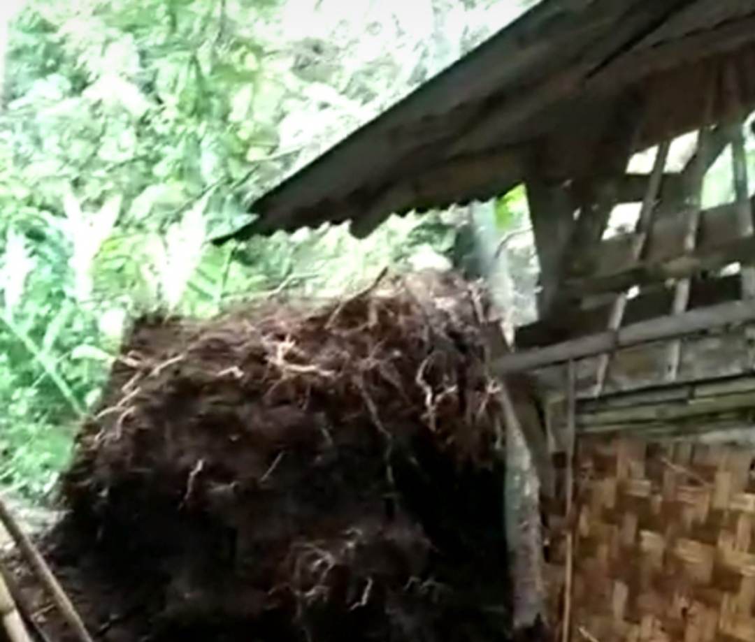 JASINGA – BOGOR – MB1 || Rumah Sdr. Pajri, warga kampung Sipak Dua, Desa Sipak Kecamatan Jasinga Kabupaten Bogor, ditimpah pohon besar yang tumbang akibat hujan desar dibarengi angin topan...