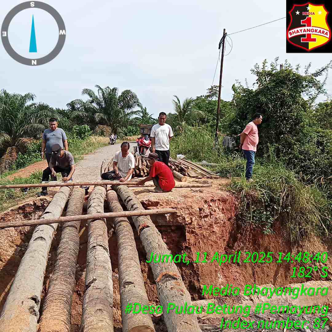 BATANGHARI – JAMBI, MB1 II Jembatan penghubung antar Dua desa di Desa Pulau Betung Kecamatan Pemayung Kabupaten Batanghari Provinsi Jambi, kini dalam kondisi rusak parah amblas dan mengancam kes...