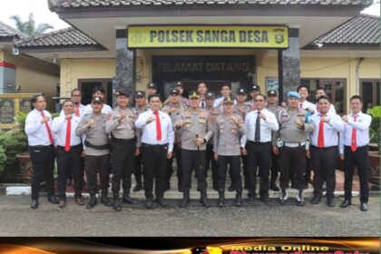 SANGA DESA – MUBA, MB1 II Kunjungan Perdana Kapolres Musi Banyuasin AKBP Ruri Prastowo SH SIK MIK ke Mapolsek Sanga Desa di sambut langsung oleh Kapolsek Sanga desa dan anggota. Jum’at, (0...
