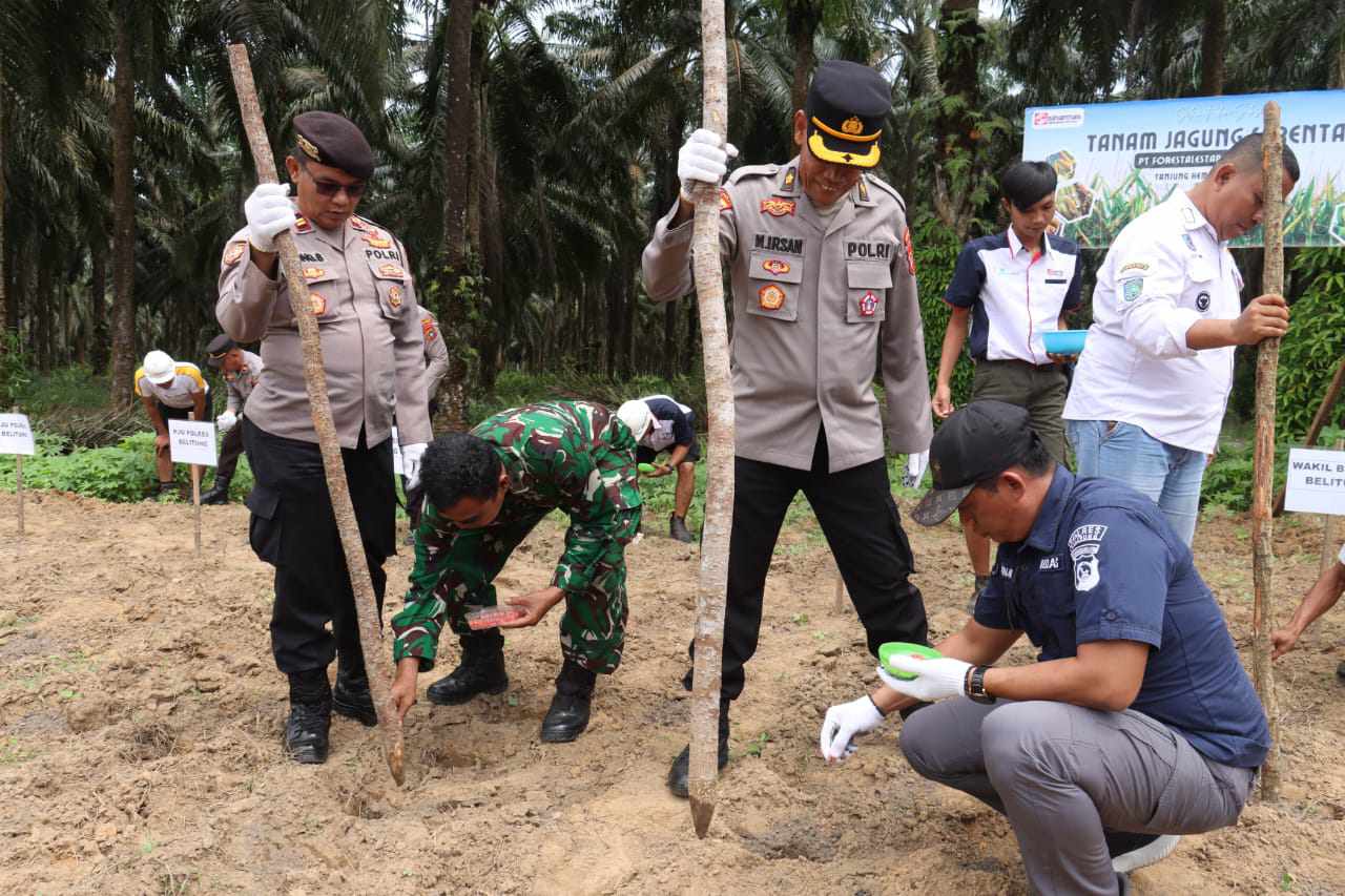 BELITUNG, MB1 II Kapolres Belitung AKBP Sarwo Edi Wibowo, S.I.K., bersama Pejabat Utama (PJU) Polres Belitung melaksanakan kegiatan penanaman bibit jagung di lahan PT. Foresta Lestari Dwikarya, tepatn...