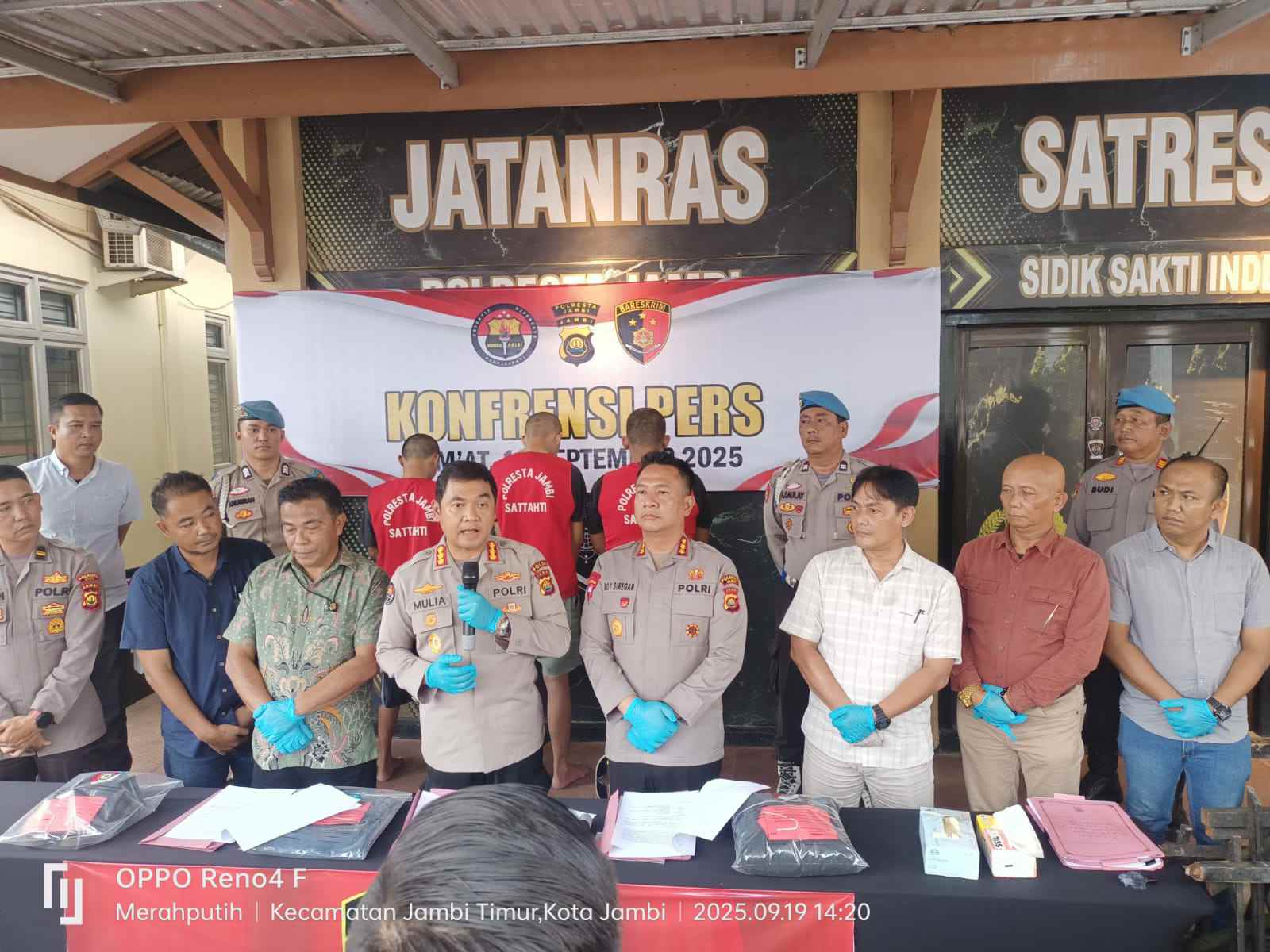 KOTA JAMBI, MB1 II Polri Polresta Jambi melaksanakan press release terkait keberhasilan mengamankan pelaku pengrusakan dan penjarahan pada terjadinya aksi unjuk rasa. Kegiatan dipimpin Kabid Humas Pol...