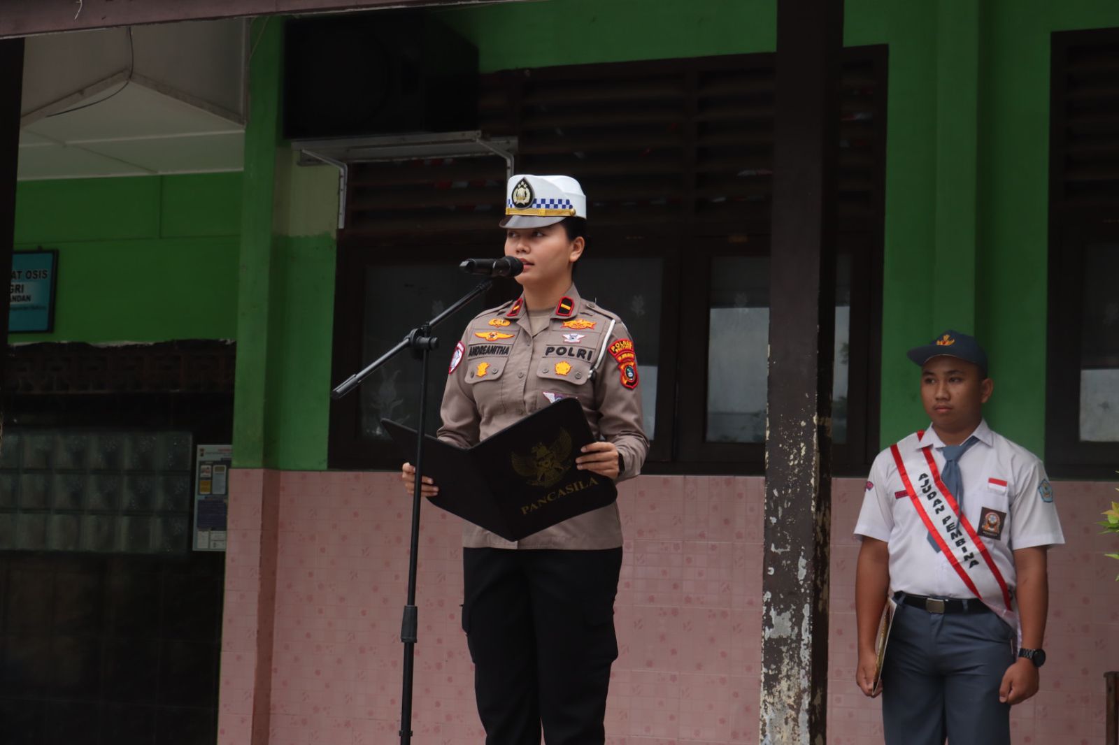 BELITUNG, MB1 II Dalam rangka memperingati HUT Polwan ke-77 dan HUT Lalu Lintas ke-70, Polwan Polres Belitung melaksanakan kegiatan upacara bendera di SMA PGRI Tanjungpandan, Senin (08/09/2025). Adapu...