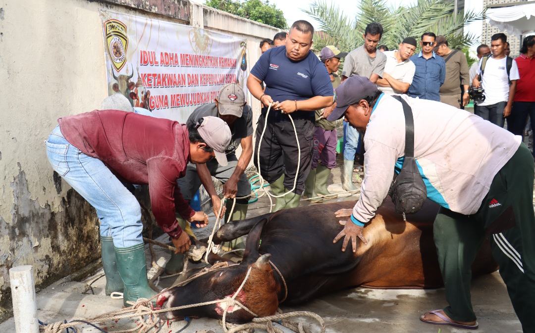 BANGKA, MB1 II Dalam rangka memperingati Hari Raya Idul Adha 1446 H/2025 M, Kepolisian Resor Bangka menggelar pemotongan hewan kurban, bertempat di Mapolres Bangka, Sabtu (7/6/2025). Ditahun 2025 ini ...
