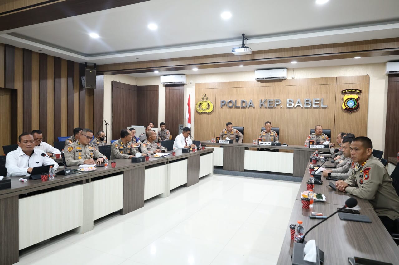 BANGKA BELITUNG, MB1 II Polda Bangka Belitung menggelar kegiatan anev Mingguan situasi Kamtibmas di Rupattama Polda Babel, Senin (26/05/2025). Kegiatan anev di pimpin oleh Wakapolda Bangka Belitung, B...