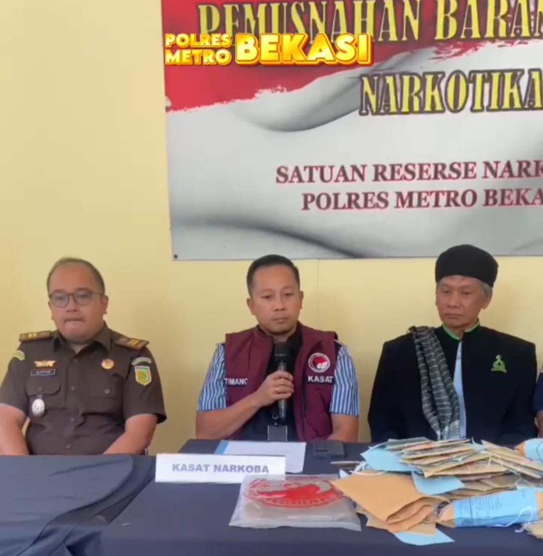 KABUPATEN BEKASI, MB1 II Satuan Reserse Narkoba Polres Metro Bekasi Kompol Yulianto Timang bersama stake holder terkait melaksanakan kegiatan pemusnahan barang bukti narkotika dari hasil pengungkapan ...