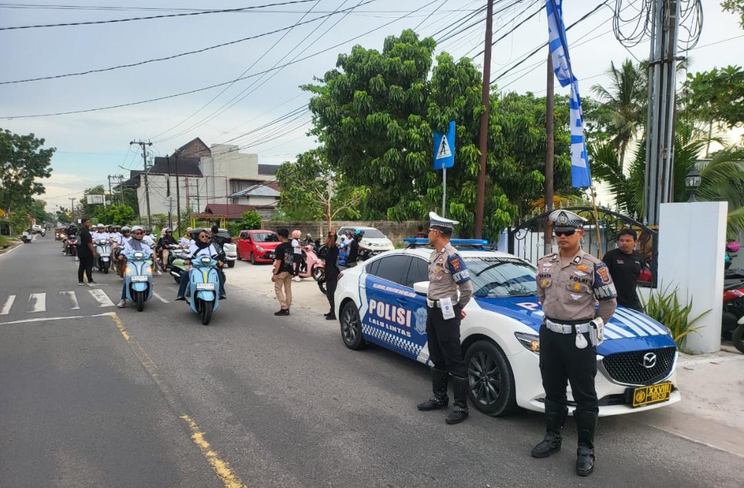 BELITUNG, MB1 II Satuan Lalu Lintas (Satlantas) Polres Belitung melalui Unit Turjawali melaksanakan kegiatan pengamanan dan pengawalan rombongan touring dalam rangka Launching New Product Yamaha Gear ...