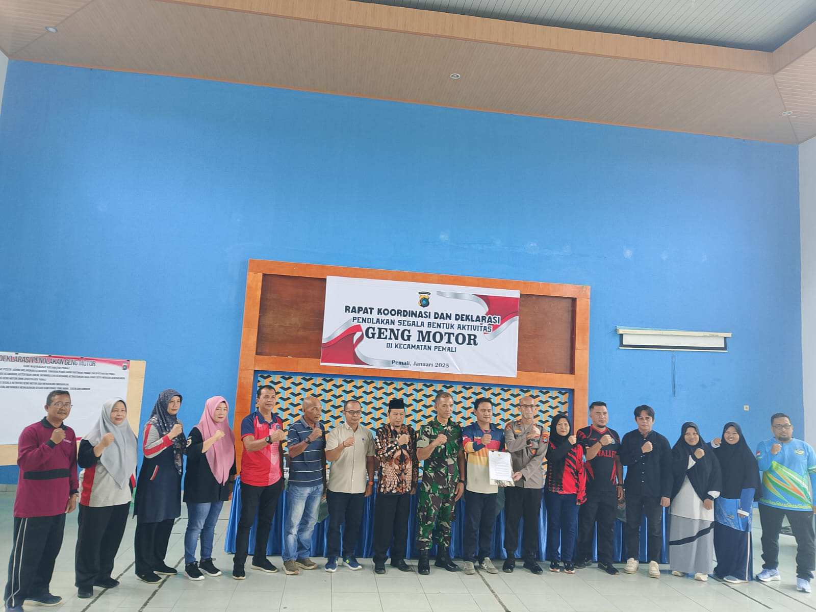 BELITUNG, MB1 II Polres Belitung, bersama Forkopimda Belitung, menggelar apel sekaligus penandatanganan deklarasi penolakan segala bentuk aktivitas geng motor yang dilaksanakan di halaman gedung nasio...