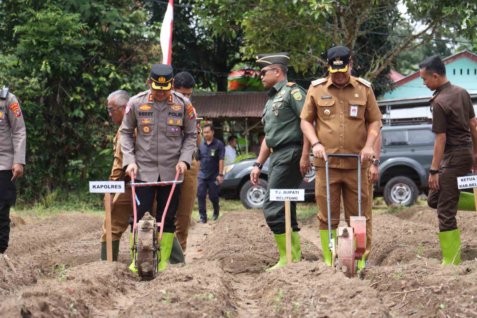 BELITUNG, MB1 II Untuk mendukung program asta Cita Presiden RI, Polres Belitung bersama Forkopimda Belitung melaksanakan kegiatan Penanaman Jagung secara Serentak dilahan pertanian Kecamatan Badau, Ka...