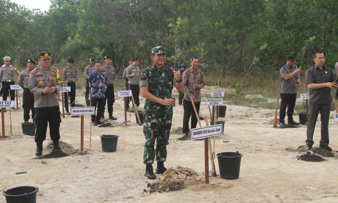 PANGKALANBARU, MB1 II Danrem 045/Gaya Brigjen TNI Safta Feryansyah ,S.E.,S.I.P.,M.Han., ikut serta Penanaman pohon secara serentak di jajaran Polda Kep. Bangka Belitung tempat di belakang GOR Sahabudd...