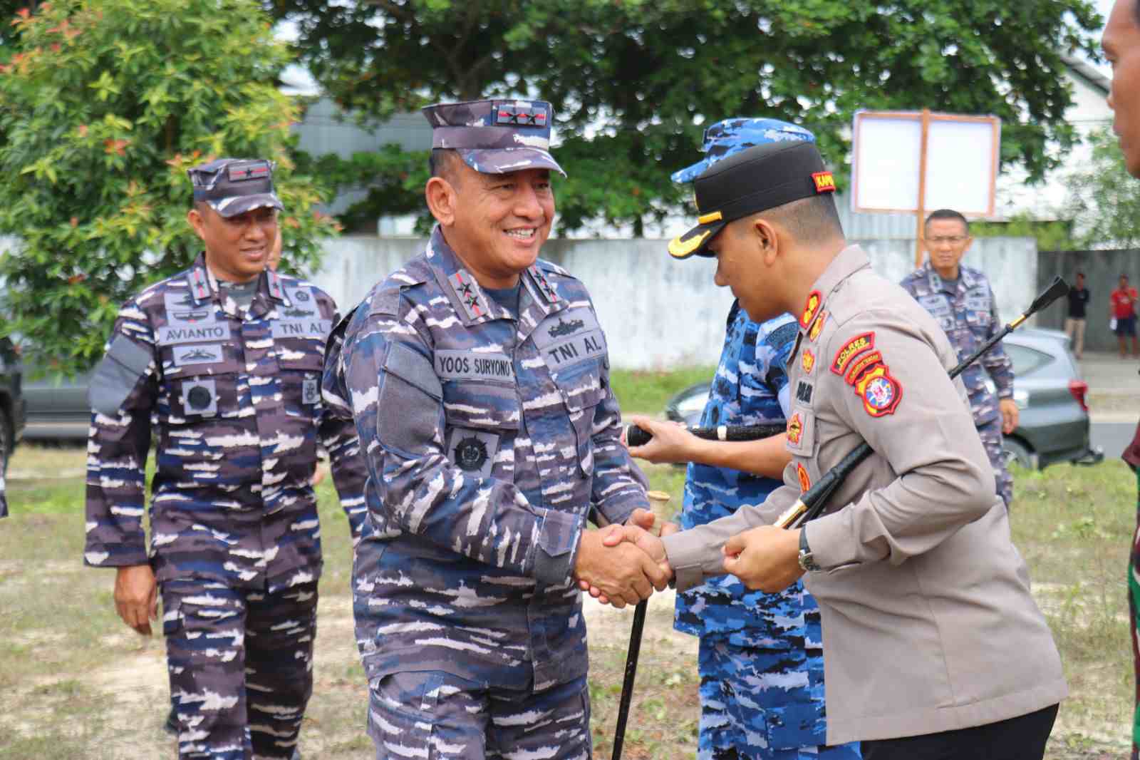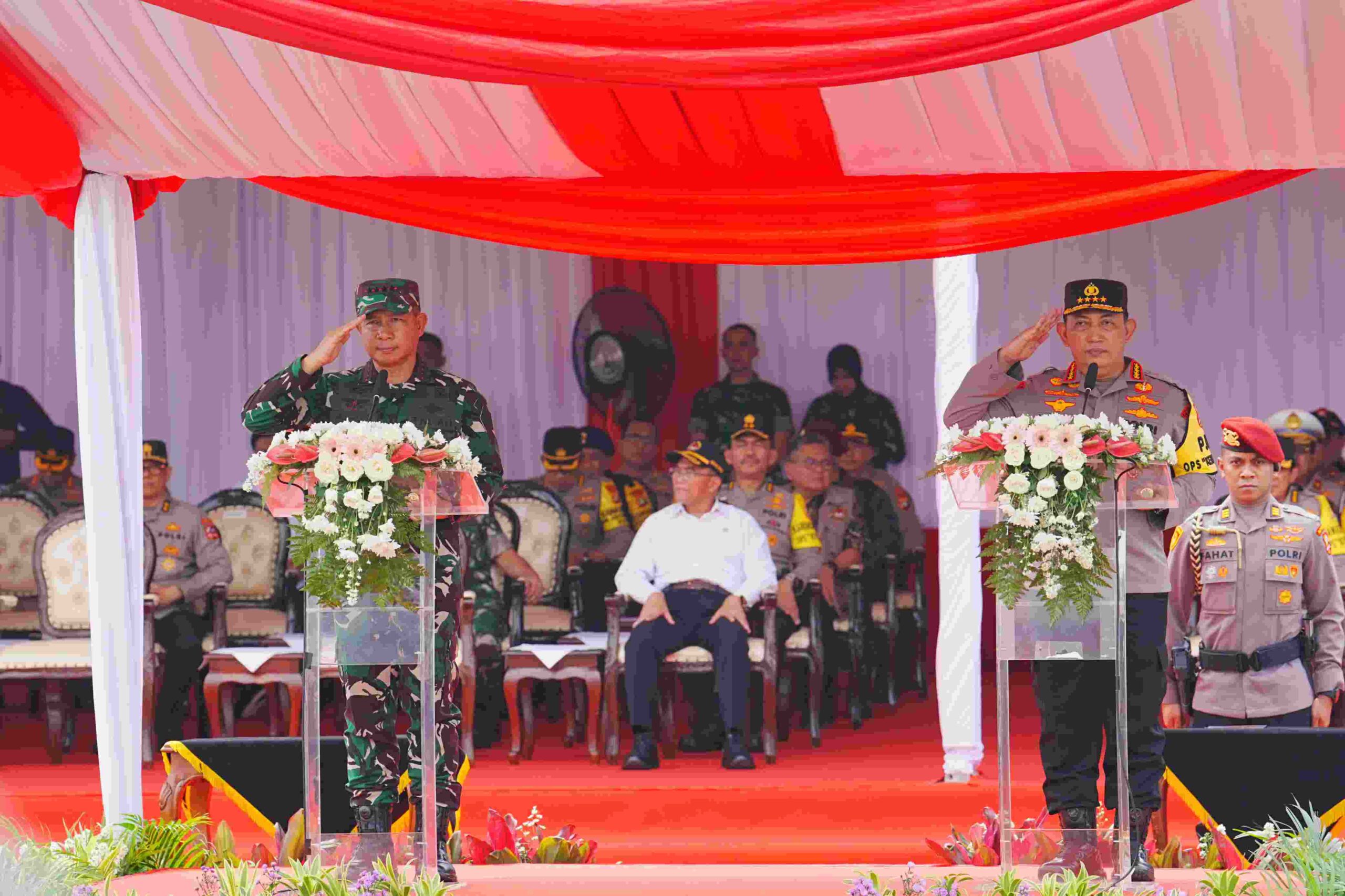 MANADO – MB1 II Kapolda Sulawesi Utara Irjen Pol Yudhiawan didampingi pejabat TNI, yaitu Pangdam XIII/Merdeka Mayjen TNI Legowo W. R. Jatmiko, Danlanudsri Marsma TNI Ramot C. P. Sinaga dan Danla...
