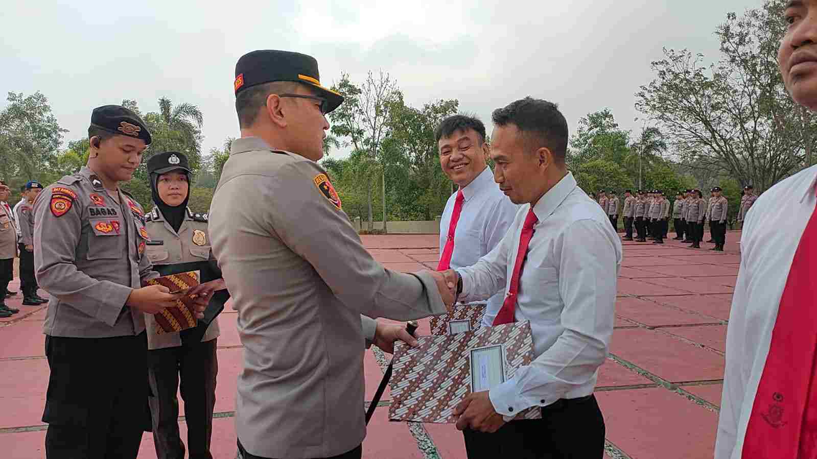 BANGKA BARAT – MB1 II Kapolres Bangka Barat AKBP Ade Zamrah SIK memberikan penghargaan kepada personel berprestasi, pemberian penghargaan diberikan saat Apel pagi di Mapolres Bangka Barat, Kamis...
