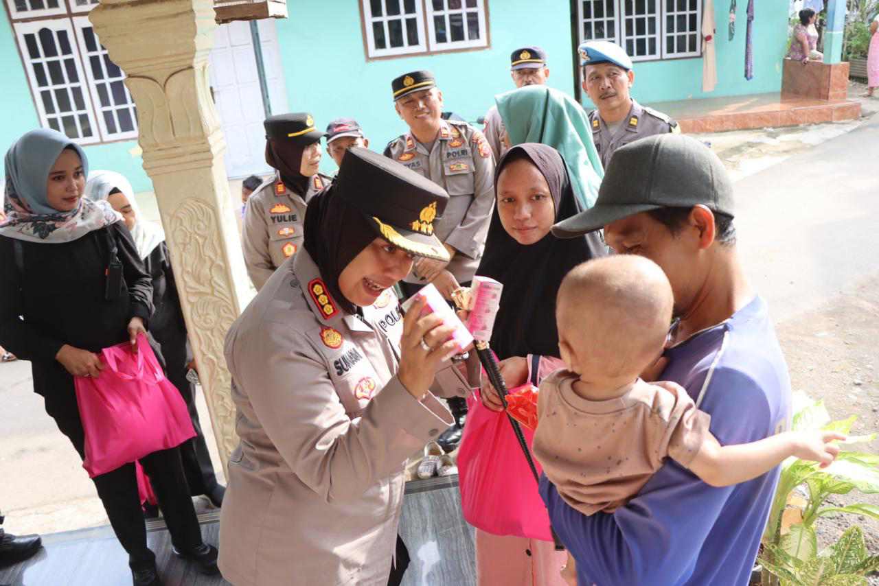 CIREBON – JABAR – MB1 II Kapolresta Cirebon Polda Jabar Kombes Pol Sumarni, S.I.K, S.H, M.H, memberikan bantuan kepada anak asuh stunting, Senin (29/1/2024). Kegiatan serupa juga dilaksana...