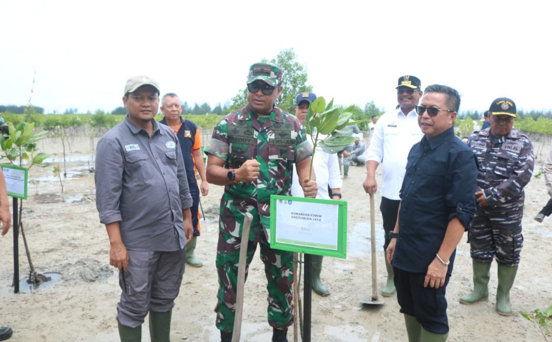MERAWANG – MB1 II Danrem 045/Gaya Brigjen TNI A.Dedy Prasetyo, S.I.P. ikut serta penanaman pohon (Mangrove) serentak seluruh Indonesia dalam rangka hari lahan basah sedunia tempat Pantai Batu Tu...