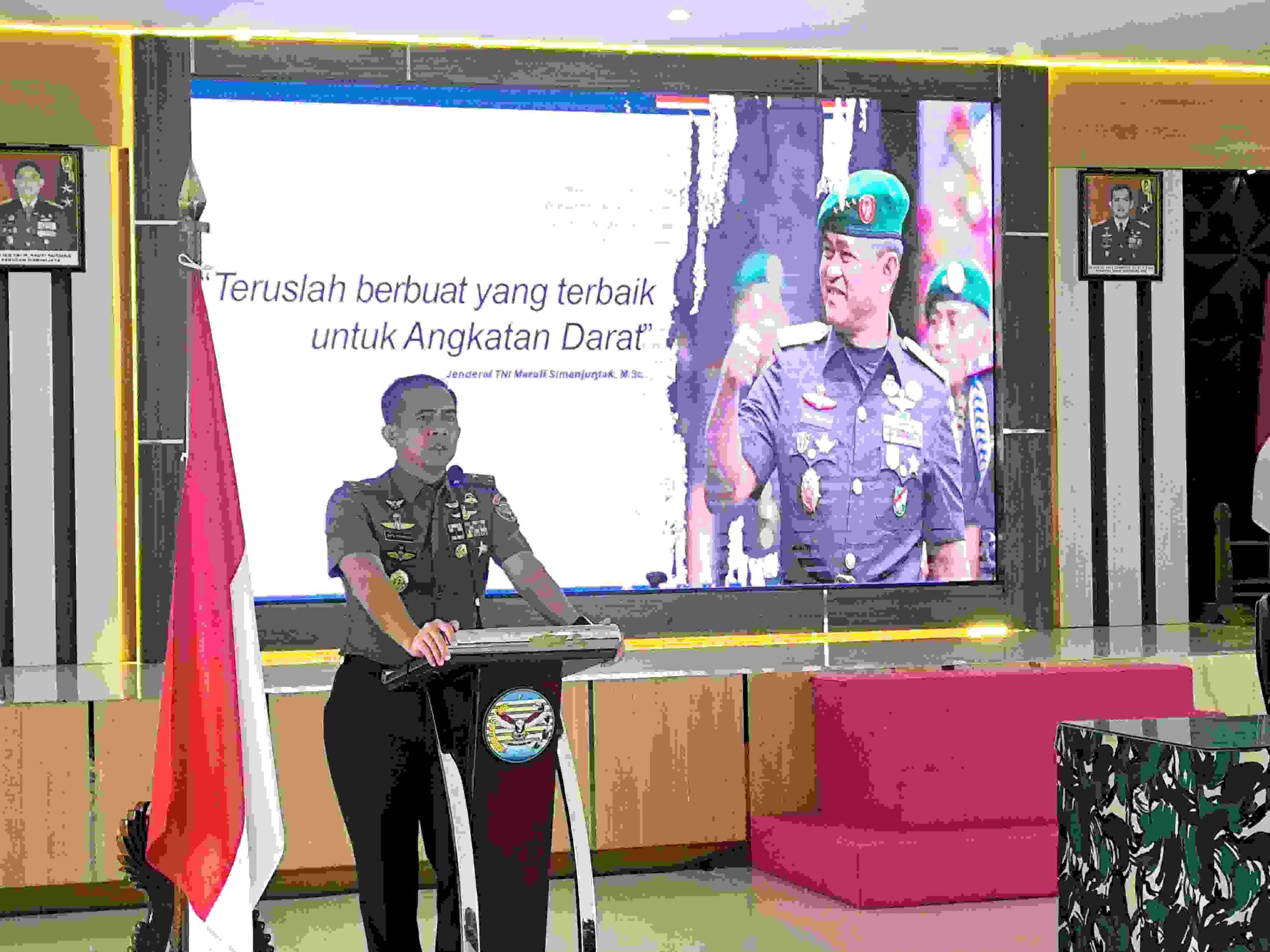PANGKALPINANG, MB1 II Danrem 045/Gaya Brigjen TNI Safta Feryansyah S.E.,S.I.P.,M.Han., beserta Prajurit, PNS dan anggota Persit jajaran Korem 045/Gaya menerima pengarahan dari Kepala Staf Angkatan Dar...