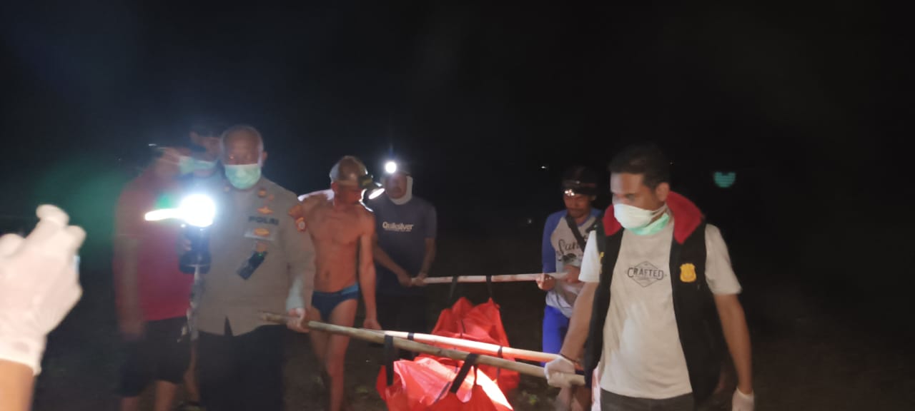 CIANJUR, MB1 II Guna penanganan pertama, personel Polsek Agrabinta mengecek tempat kejadian perkara (TKP) penemuan mayat seorang laki-laki di Muara Cibuni Kampung Cibungur Desa Wangunjaya Kecamatan Ag...