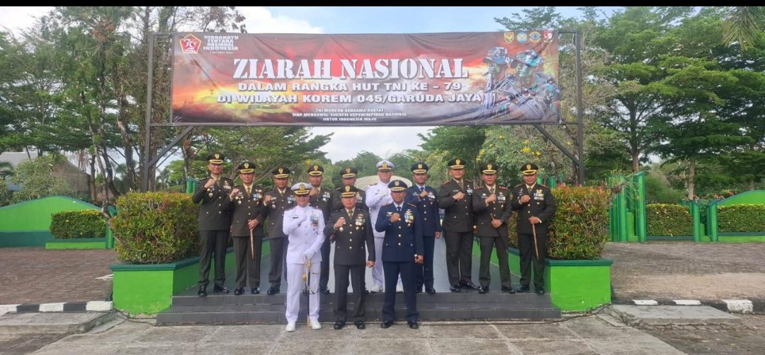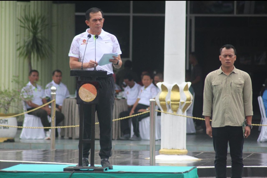 PANGKALPINANG, MB1 II Kasrem 045/Garuda Jaya Kolonel Inf Ichwansyah,S.H.,M.H., mewakili Danrem 045/Gaya Brigjen TNI Safta Feryansyah ,S.E.,S.I.P.,M.Han., pimpin langsung Upacara HUT ke-79 TNI Tahun 20...