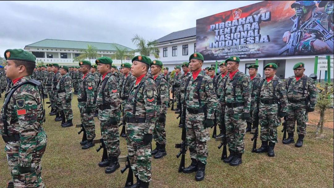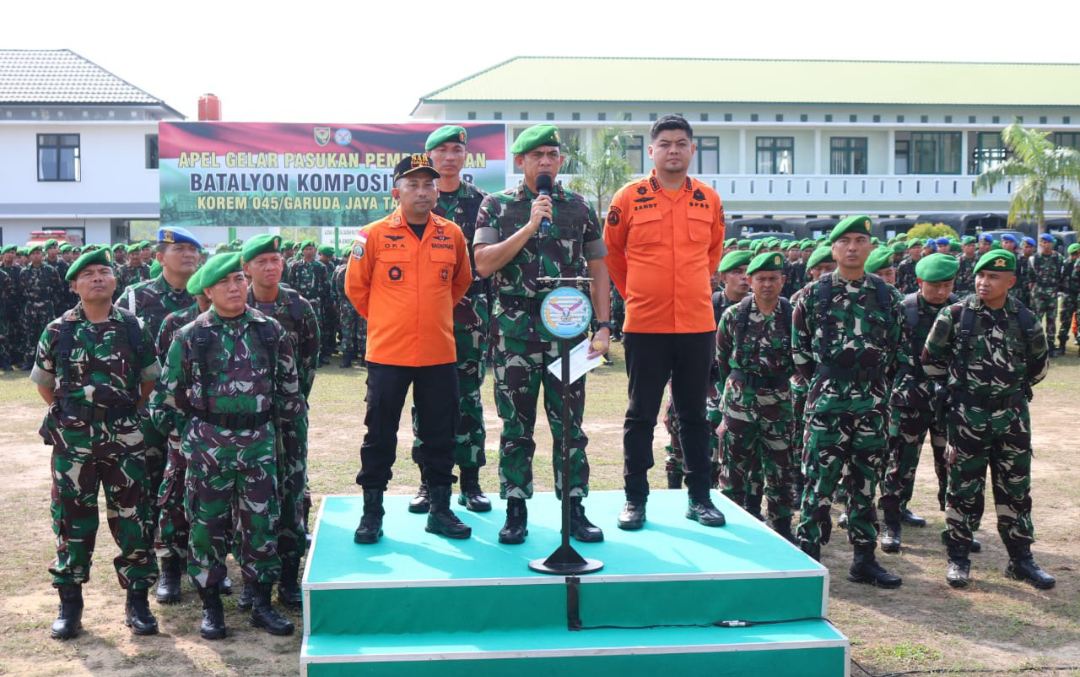 PANGKALPINANG, MB1 II Danrem 045/Gaya Brigjen TNI Safta Feryansyah ,S.E.,S.I.P.,M.Han., memimpin Apel Gelar Batalyon Komposit Pasukan Reaksi Cepat Penanggulangan Bencana (PRCPB) dalam rangka Siaga Kon...