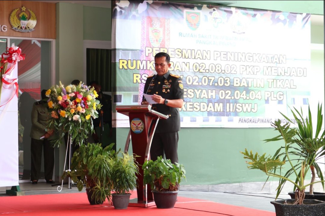 PANGKALPINANG, MB1 II Danrem 045/Gaya Brigjen TNI Safta Feryansyah ,S.E.,S.I.P.,M.Han., meresmikan Rumah Sakit Tk IV 02.07.03 Batin Tikal Pangkalpinang, Jalan Ahmad Yani Dalam, Kelurahan Kejaksaan Kec...