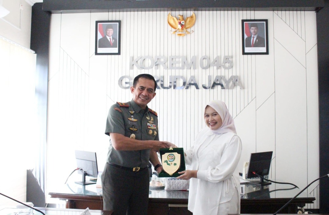 PANGKALPINANG, MB1 II Danrem 045/Gaya Brigjen TNI Safta Feryansyah,S.E., S.I.P.,M.Han., di dampingi Kasrem dan Para Kasi Korem 045/Gaya sambut kedatangan anggota DPD RI Ibu Dinda Rembulan, B. A. dirua...